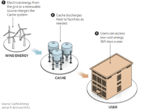 The Wall Street Journal wrote a nice article highlighting Champaign, Illinois based Cache Energy. Check it out! Cache is iterating on a known process to develop long duration thermal energy storage (which stores heat instead of electricity). Unlike many of the other approaches in this space, their storage medium is able to be stored in ambient conditions, which could make it a particularly good fit for heating loads in harsh and remote environments; thermal storage has the potential to decarbonize major chunks of industrial emissions from process heat (which is usually provided by fossil fuels and can be difficult or cost prohibitive to electrify directly).
